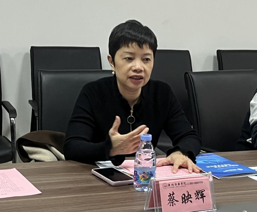广州新华学院校长助理、教务处处长蔡映辉致欢迎词,详细介绍了学校应用型办学定位及校区专业布局。她指出,三方可在三个方面展开深度合作:共建创新平台以实现资源互补,通过订单班与产业学院共同培育本土急需人才,以及推动科研成果的市场化转化。