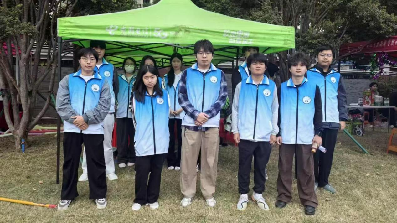 绿色帐篷下,一群“蓝白身影”成了赛场的“隐形支撑”。身着志愿服的同学们整齐列队,随时准备为运动员提供服务——递水、引导、整理物资,他们的身影穿梭在赛场内外,用细致的守护托举起赛事的顺利进行。