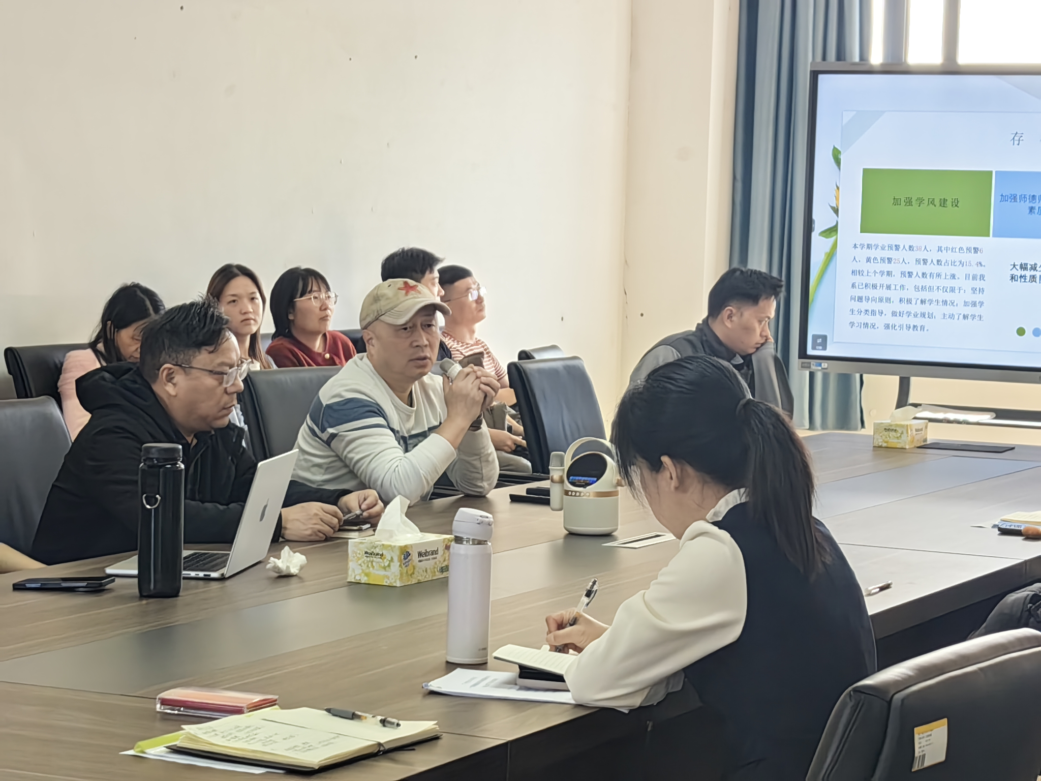 会上,三大教研室负责人依次汇报期中教学检查开展情况。高等数学教研室主任赵志琴汇报,教研室已顺利完成上学期教学资料归档整理与教案优化升级,针对课堂教学把控、青年教师互动设计等薄弱环节,制定针对性改进举措。组织开展 "互学互鉴" 主题听课交流活动,聚焦数列极限、极限运算和函数连续性等核心教学内容,促进教师成长。同时,积极组织学生参加比赛,在全国大学生数学竞赛中斩获 17 项荣誉奖励,较去年 12 项实现显著突破。人工智能教研室副主任胥立军汇报,教研室始终坚持以教学质量为核心,通过开展教师互听互评、专题学生座谈会等活动,精准收集教学反馈意见;后续将推进磨课与集体备课制度化、规范化,通过教研室集体智慧优化教学效果。同时,聚焦学生实践能力与创新思维培养,加大技能竞赛、创新创业项目的组织与指导力度,全面提升学生综合素养。数据科学与大数据技术教研室副主任邓芳汇报,教研室注重教学精细化管理与全流程质量监控,牢筑教学质量防线。同时,为精准对接行业发展需求,邀请本教研室乔梁博士开展行业发展专题讲座,深度剖析行业需求与人才培养方案的衔接要点;下一步将结合讲座成果修订课程内容、明确核心知识点,持续优化课程体系设置,强化实践教学环节,实现教学效果与行业发展需求同频共振。