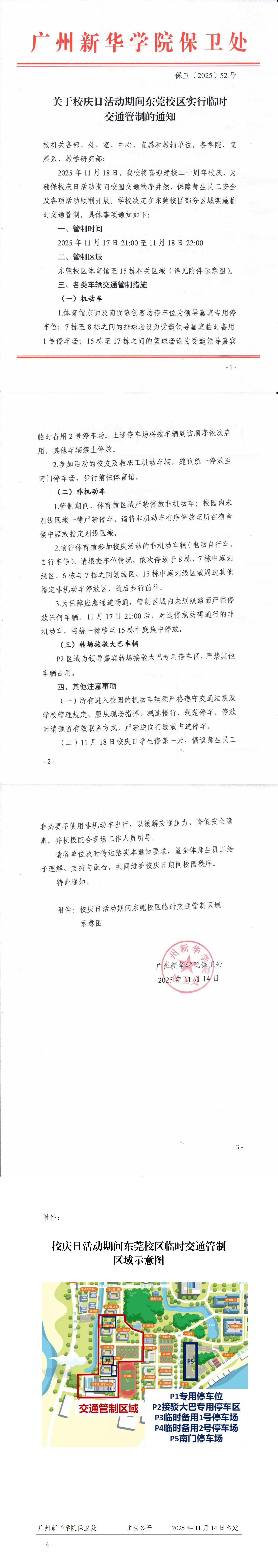 关于校庆日活动期间东莞校区实行临时交通管制的通知